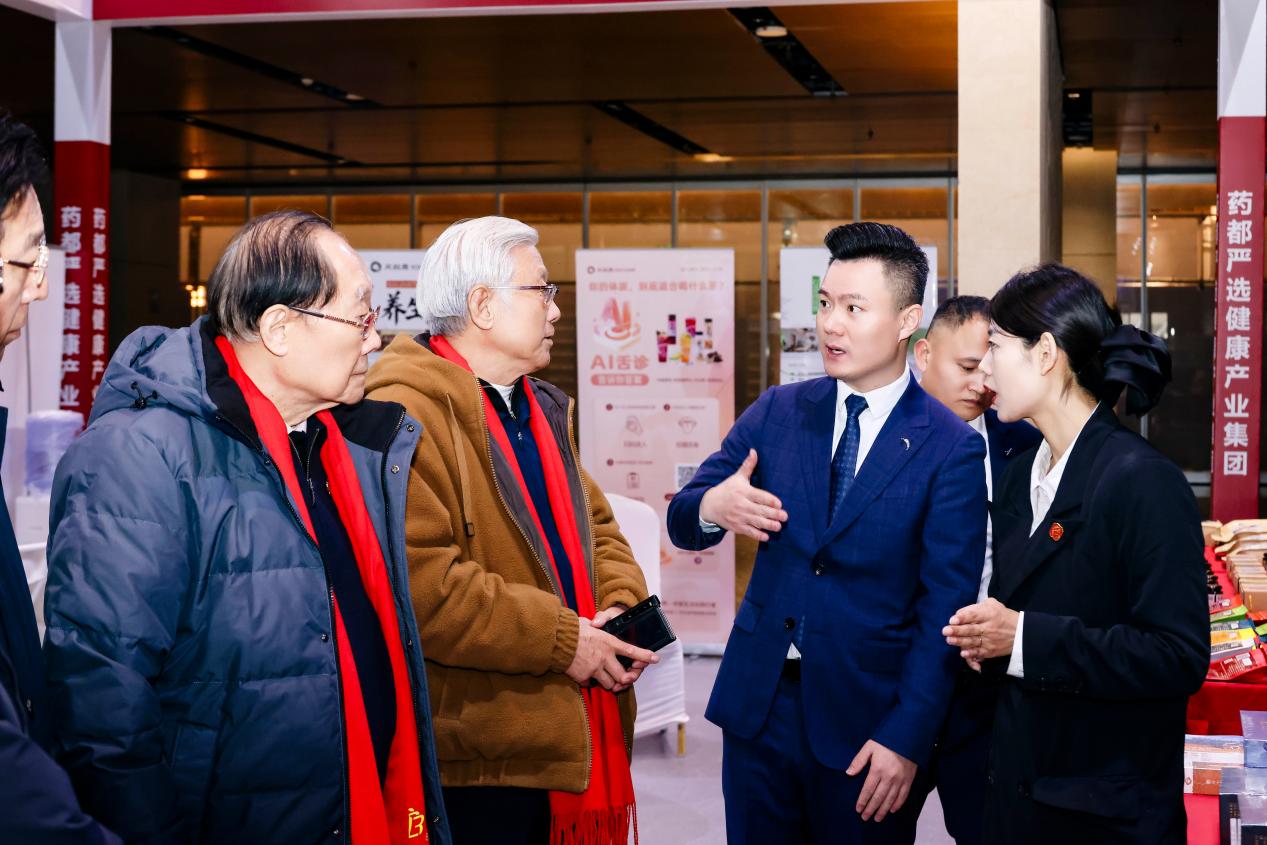 配套举办的首届中医药产业博览会同步开放展区,集中展示中医药全产业链发展成果。法国·中国中医药中心、英国中医师学会、泰国中医师总会、澳大利亚中医药慈善基金会等13家海内外中医药相关组织代表集体亮相,儿童代表现场敬献鲜花,彰显中医药国际传承的温度与希望。泰国中医师总会理事会会长林丹乾等国际代表分享了中医药海外传播推广的实践经验。严晓蒸、王国辰、路仁凯、魏兴涛等与会领导嘉宾共同巡览展区,在法国·中国中医药中心展区了解海外诊疗服务与文化传播模式,在中医春晚组委会展区体验文化普及创新路径,在安国药都严选展区观摩道地药材、古法炮制器具及爆浆黑芝麻丸等创新药食同源产品,展区内“药都医藏”典籍长廊贯通古今,构建起深厚的文化交流空间。